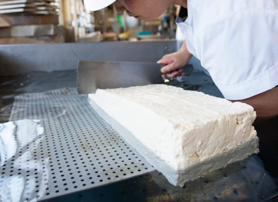 その年に合わせて、より品質のよい青大豆を厳選。白大豆よりも甘みや香りが強いのが特徴。同じ豆から、3種類の味や食感の違う豆腐を作っています。